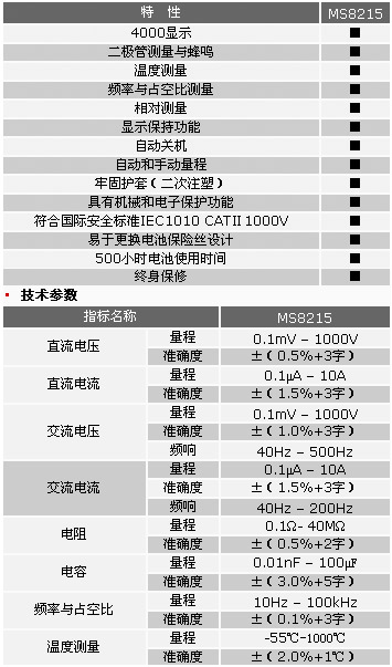 • 關(guān)鍵參數(shù):直流電壓;交流電壓;電阻,電容,頻率,占空比,通斷測試, 二極管測試.