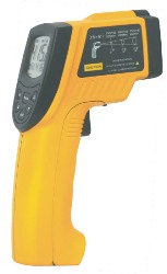 紅外測溫儀測量物體表面溫度,其光學系統(tǒng)匯聚被測物體的紅外輻射能量,匯聚到的能量聚焦在光電探測器上并轉(zhuǎn)變?yōu)橄鄳碾娦盘?,該信號?jīng)電路轉(zhuǎn)換變?yōu)樽x數(shù)顯示LCD屏幕上,本機配備的激光燈能有效的對準被測物體及提高測量精度。