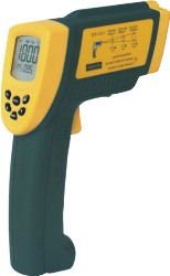 紅外測溫儀測量物體表面溫度,其光學(xué)系統(tǒng)匯聚被測物體的紅外輻射能量,匯聚到的能量聚焦在光電探測器上并轉(zhuǎn)變?yōu)橄鄳?yīng)的電信號,該信號經(jīng)電路轉(zhuǎn)換變?yōu)樽x數(shù)顯示LCD屏幕上,本機配備的激光燈能有效的對準(zhǔn)被測物體及提高測量精度。