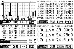 9) 主要測(cè)量界面:列表界面、圖形界面。列表界面和圖形界面可以同時(shí)顯示11個(gè)中心頻率的頻帶聲級(jí)壓以及A、C和Z計(jì)權(quán)聲壓級(jí)。