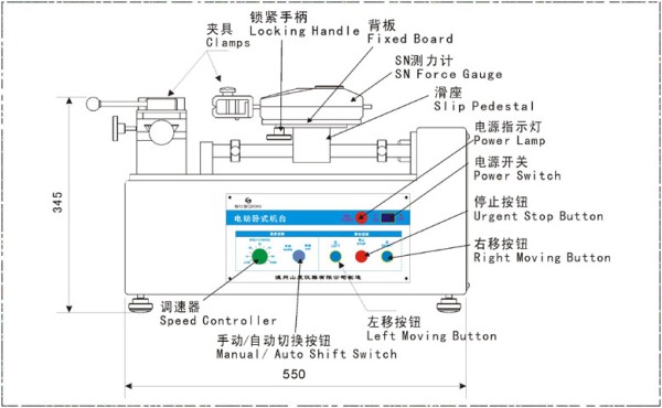 SJH-500電動臥式機(jī)臺是專為SN系列和SH系列(2-500N)推拉力計配套用的推拉負(fù)荷試驗機(jī)臺。本產(chǎn)品采用雙導(dǎo)桿結(jié)構(gòu),具有穩(wěn)定性好,適用范圍廣,使用方便等優(yōu)點,并具有無極調(diào)速,手動(點動)、自動控制切換功能。適用于橡膠塑料、輕工紡織、建筑門窗、復(fù)合材料、電線電纜、汽車配件、動力機(jī)械、科研機(jī)構(gòu)等行業(yè)的推拉負(fù)荷,插拔力,破壞試驗等測試。