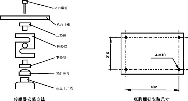 注意:安裝時(shí)請(qǐng)居中安裝傳感器、機(jī)臺(tái)、千斤頂。測(cè)試使用時(shí),拉壓負(fù)荷力的方向應(yīng)在機(jī)臺(tái)中心。