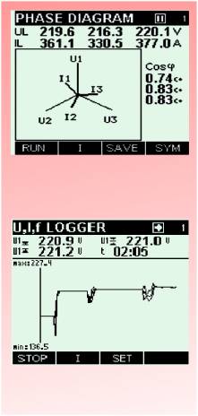 通過預(yù)設(shè)的記錄屏幕,可對所有主要電力質(zhì)量參數(shù)進行現(xiàn)場評估(U、I、P、功率因數(shù)、cosφ、總諧波失真、單獨諧波分量測量、相移等)。