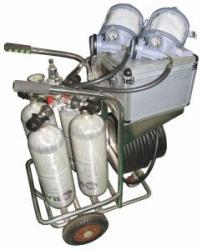 SP-98 車式長管呼吸裝置 SP-98車式長管呼吸裝置,是一種采用車載貯氣瓶、長膠管輸送氣體供操作者呼吸用的正壓式呼吸裝置。企業(yè)標(biāo)準(zhǔn)Q/HDKLA012-2003,參照歐洲標(biāo)準(zhǔn)EN132制定。 SP-98安全可靠、使用、維護(hù)簡便,可供給兩名操作者同時使用。由于采用車載式,SP-98能夠很方便地移動至離操作現(xiàn)場最適宜的位置,4個氣瓶可以同時或者單獨使用,并在使用過程中更換其中任意一只氣瓶。它特別適用于狹窄的工作場合,如罐體內(nèi)部、船艙、地下管道、密閉空間等,在石化、冶金、消防、航天、核工廠、化工廠等需長時間在毒氣環(huán)境及貧氧環(huán)境中工作的場合被廣泛使用。注意:在使用中必須有一人監(jiān)視呼吸裝置的使用情況,及時換接氣瓶。 主要特點