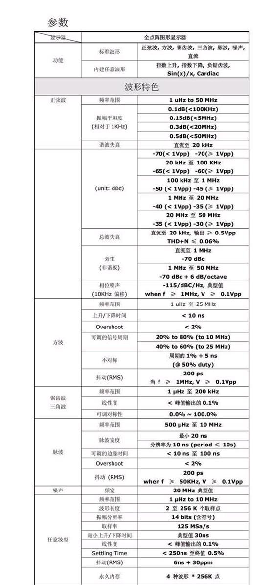 14位,125MSa/s,256K取樣點的任意波形 |