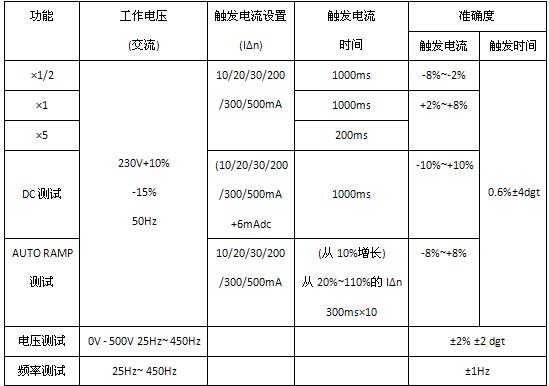- 關(guān)鍵參數(shù):RCD-320漏電開關(guān)測試儀 額定動作電流:10/20/30/200/300/500mA.故障動作時間 1000ms,200ms(*5) ,最低分辨率 1ms.大型 LCD數(shù)字顯示和模擬針雙顯示.LED燈顯示被測回路接線是否正確.0°/180°相位選擇