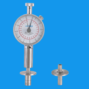 5、AGY-1和AGY-2型水果硬度計外圈刻度單位為×105帕,內(nèi)圈刻度單位為kg/cm2,AGY-3型的,連接小的壓頭時,用內(nèi)圈刻度讀數(shù),連接大的壓頭時,用外圈刻度讀數(shù)。
