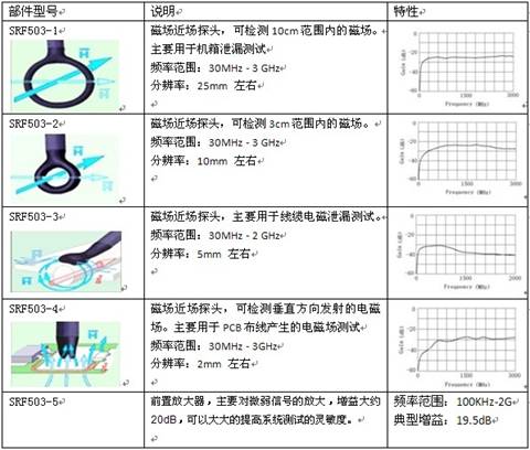 SRF503 SIGLENT近場探頭套件主要用于電子產(chǎn)品的電磁場測量,實現(xiàn)干擾源快速位,多種形狀的探頭,寬頻率范圍,可以完成多種的電磁場測試任務(wù)。包括四根近場探頭和一個配套使用的放大器,放大器增益約20dB,可提高系統(tǒng)測試靈敏度!廣泛應(yīng)用于檢測器件或者是表面的磁場方向及強度;機箱、線纜、PCB模塊等磁場泄露情況;甚至可以精確到IC引腳以及具體的走線,從而判斷干擾產(chǎn)生的原因,提高產(chǎn)品設(shè)計水平,縮短產(chǎn)品開發(fā)周期。