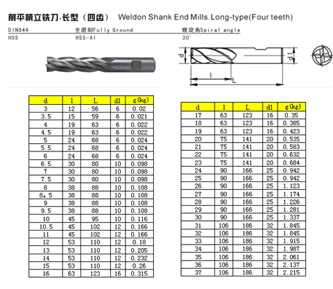 - 儀器名稱:削平柄立銑刀·長型(四齒)