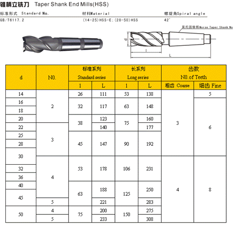 - 儀器名稱:錐柄立銑刀