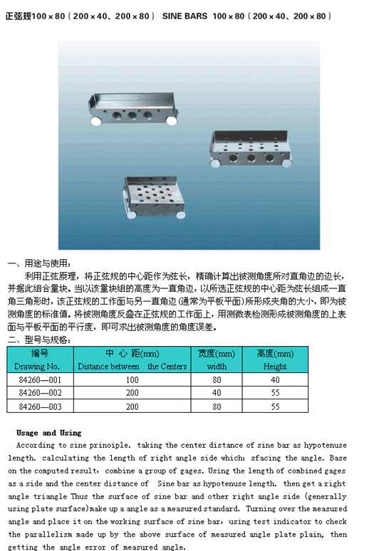 - 儀器名稱:正弦規(guī) 100×80 (200×40、200×80)
