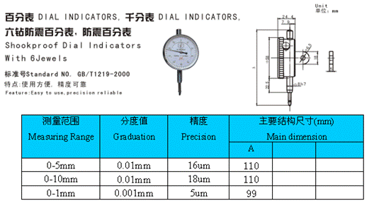 - 儀器名稱:百分表、千分表、六鉆防震百分表、防震百分表