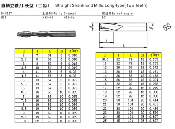 - 儀器名稱:直柄立銑刀·長型(二齒)