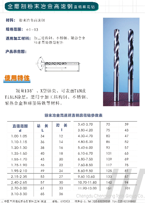 - 儀器名稱:全磨制粉沫高速鋼鉆