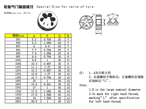 - 儀器名稱(chēng):輪胎氣門(mén)嘴圓板牙