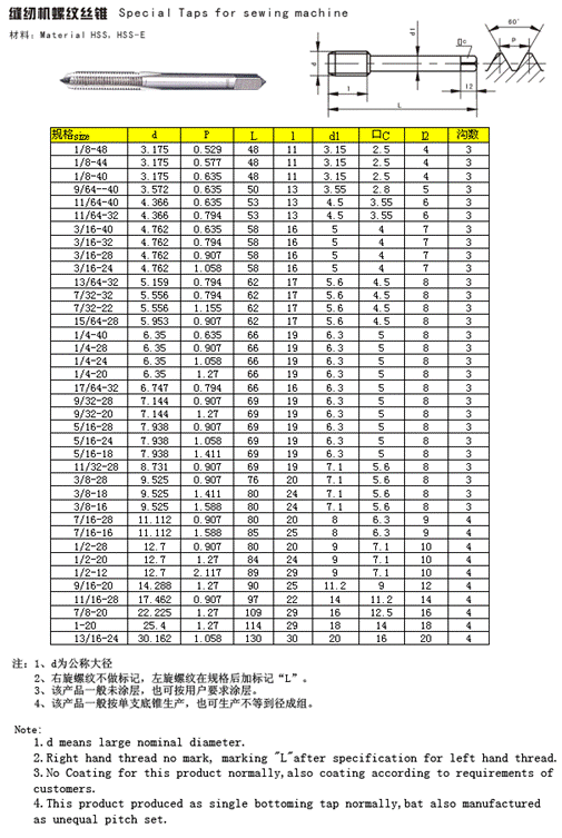 - 儀器名稱:縫紉機(jī)螺紋絲錐