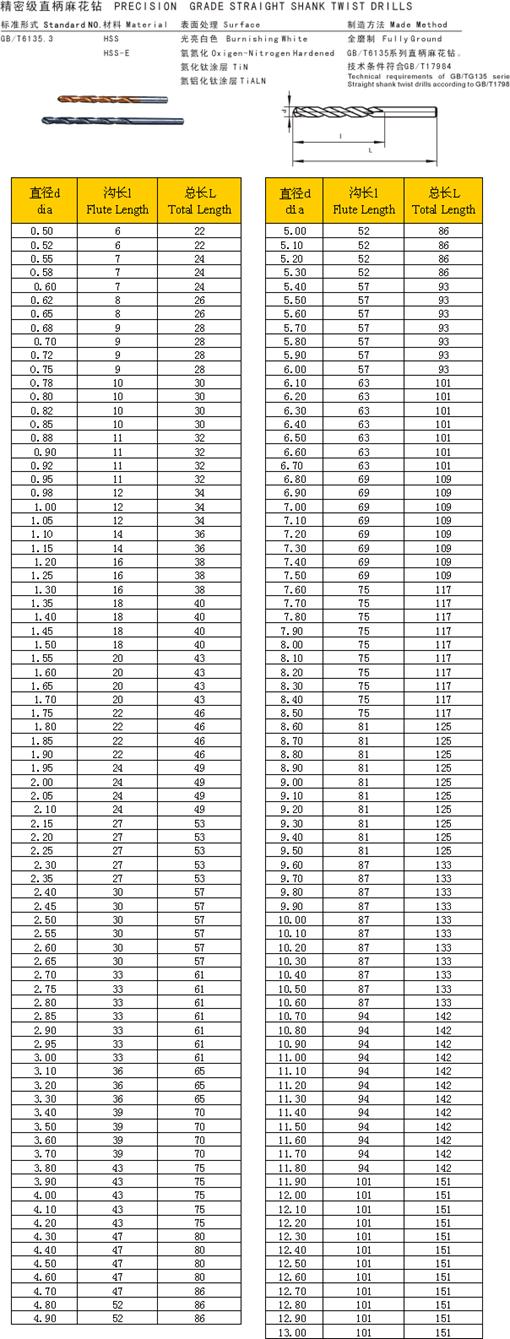 - 儀器名稱:精密級直麻花鉆(全磨制)