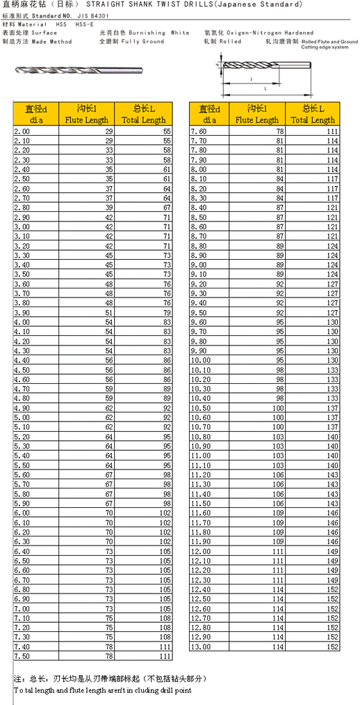 - 儀器名稱:直柄麻花鉆(日標(biāo))