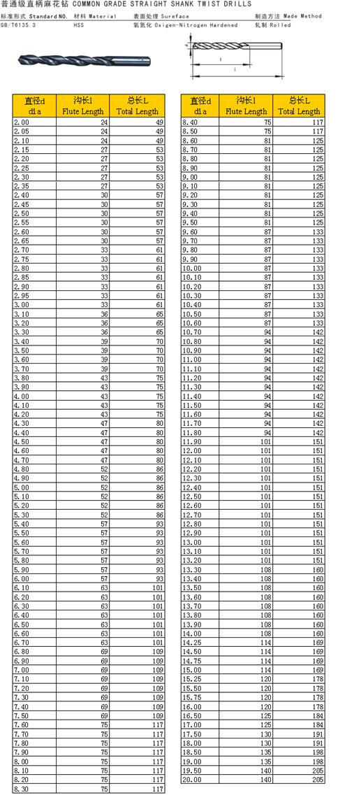 - 儀器名稱(chēng):普通級(jí)直麻花鉆