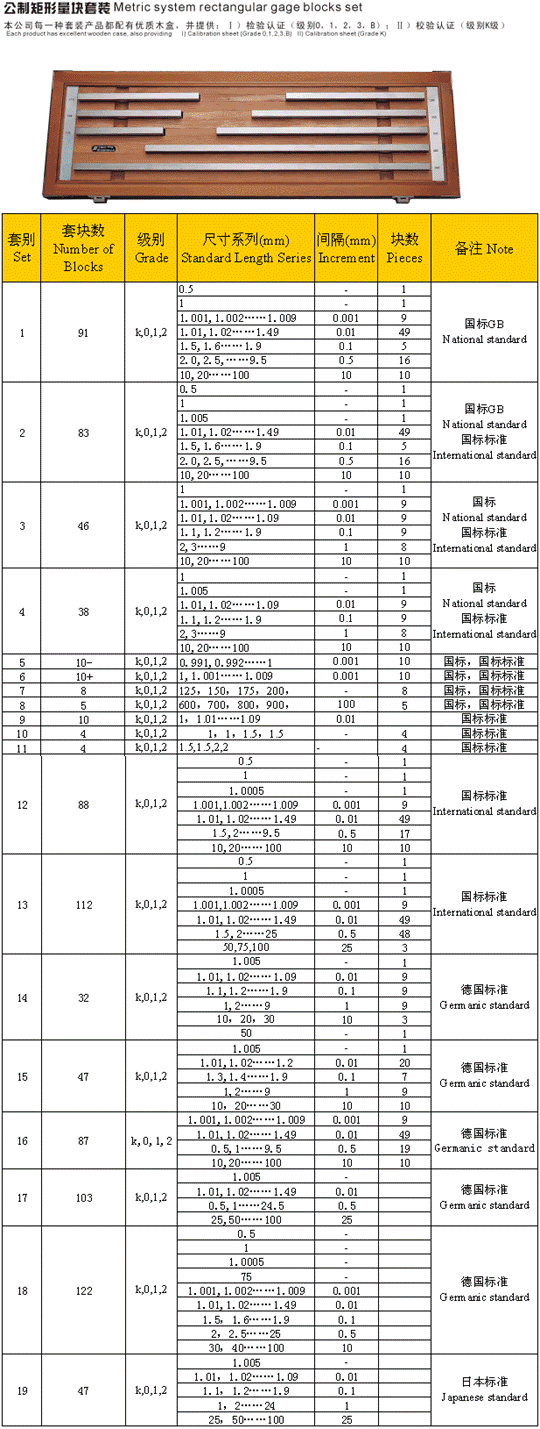 - 儀器名稱(chēng):公制矩形量塊套裝