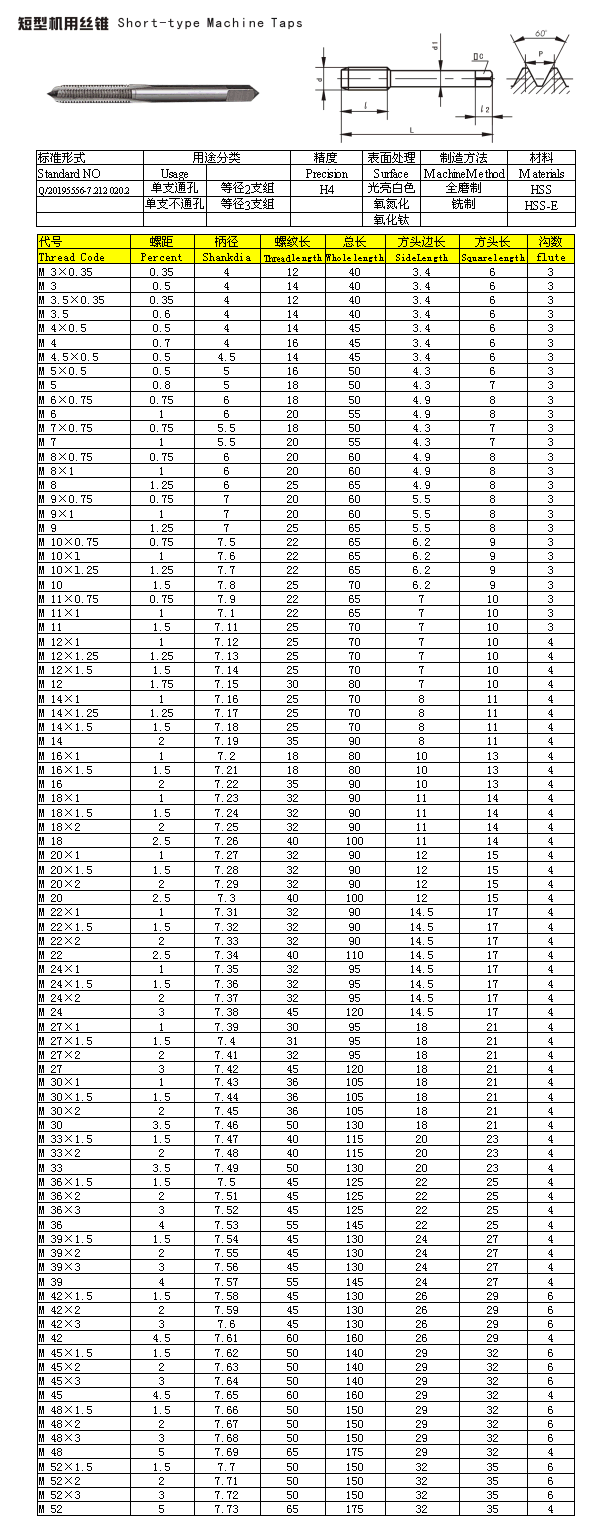 短型機(jī)用絲錐