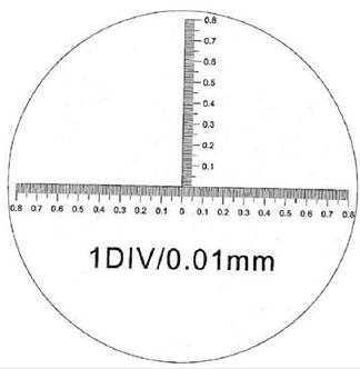 3 、本顯微鏡對準觀察物在調(diào)焦清晰時,本顯微鏡刻度尺上的1小格等于實際尺寸